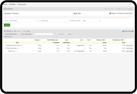 With LBX IB portal, you gain access to a comprehensive suite of performance metrics, allowing you to track your success and your clients’ progress in real-time. From commissions to trading activity, our portal equips you with everything you need to stay ahead and make informed decisions.