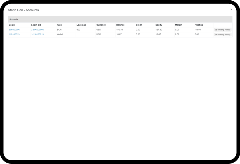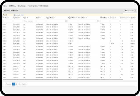 Analyse detailed trading activity. From trade history, open/close times, prices, and profits, our portal gives you full access to your clients’ trading data, helping you evaluate their strategies and success.